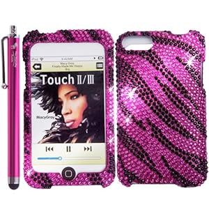 - Black and Hot Pink Zebra Bling Rhinestone Diamond Snap-On Hard Case - 4.5" Hot pink universal capacitive stylus pen included.